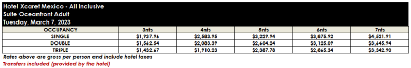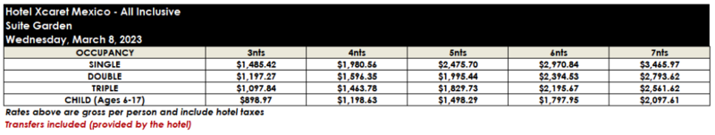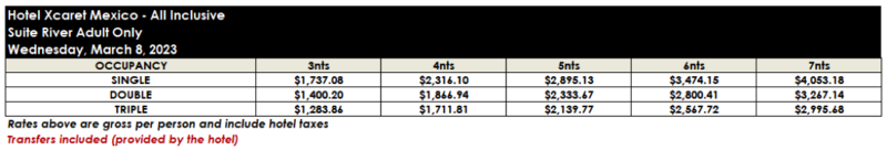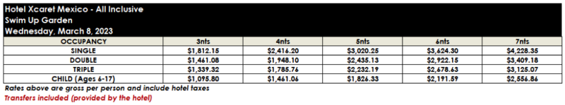 ROOM RATES FOR HOTEL XCARET MEXICO